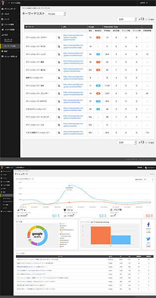 デジタルマーケティングのスキルやノウハウ、エンジニアリソースをもたない中小企業でも、短期間でオウンドメディア(独自媒体)を構築できる。アクセス解析、ブログ制作、SEO対策、Facebook/Twitterへの投稿、メルマガ配信、リード管理など、コンテンツマーケティング運営に要する機能をオールインワンで提供し、マーケッターの負担を軽減する。アクセス解析はオリジナルのもので、視覚的にわかりやすく解析結果を表示する。
