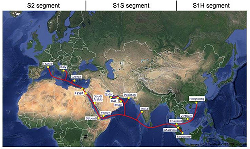 タイと香港を結ぶ延長ケーブルは全長約2900kmで、毎秒100Gbpsの最新の光波長多重方式に対応。2016年末に稼働する予定。