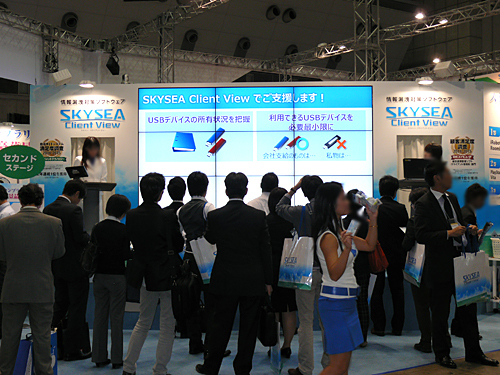 3日間で6万5000人が来場した「IT Pro EXPO 2014」 企業による顧客情報の流出が相次いだことから、情報漏えい対策に関連する製品・サービスを展示するベンダーが多く、各ブースとも賑わっていた。Skyは、クライアント運用管理ソフトウェア「SKYSEA Client View」シリーズを展示。USBデバイスやメディアによるデータの取扱いを徹底的に管理するなどの情報漏えい対策に適し、動作が軽く検索が速くて使いやすい製品であることをアピールしていた。