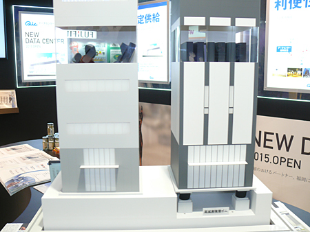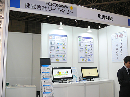 ワイ・ディー・シーは災害対策がテーマのブースを設置 ソフトやサービスを披露する出展企業が多いなかで、東芝クラウド&ソリューションはハードウェアを展示。ストレージシステムの「Toshiba Total Storage Platform」やVDI(仮想デスクトップインフラ)に適したストレージ機器「ニンブルストレージ」を前面に押し出していた。