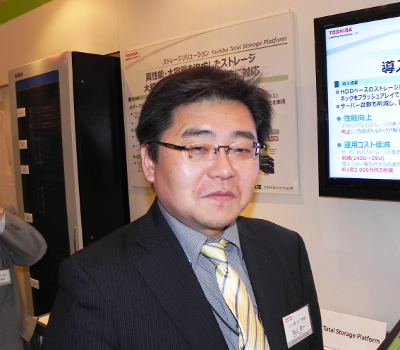 課題は、フラッシュや実用化後のMRAMをいかに量産し、コストを下げるかにある。東芝ソリューションは、東芝グループと密接に連携しながらSSD(フラッシュメモリを活用したHDD互換の記憶装置)やフラッシュアレイストレージを積極的に販売している。ただし、価格の点からも今すぐ市場にあるすべてのHDDを置き換えるわけにはいかないので、SSDやフラッシュアレイを従来のHDD型ストレージと混在させても、「まるで一つのストレージであるかのように統合的に管理する技術」(東芝クラウド&ソリューション社の秋山宏一・ストレージプロダクト&サービス商品技術部部長附)の開発にも力を入れる。