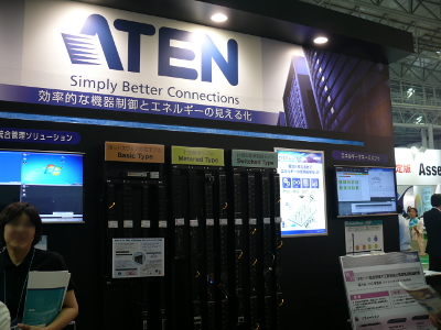 「データセンター構築運用展」に出展したATENジャパンは、システムの一元化や電力・空調管理などに悩んでいるデータセンター(DC)事業者向けに、IP KVMスイッチやeco PDU(インテリジェントPDU)などのハードウェアと統合管理ソフトウェアを組み合わせて見える化・リモート化し、同時に省エネやコスト削減も実現するソリューションを披露していた。担当者によれば、「将来、増設や移設を検討しているDC事業者が多くを訪れた」という。