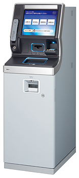 紙幣の搬送速度を高速化して取引時間を短縮するとともに、レシートとカードを一括で受け取る構造にして取り忘れを防止するなど、顧客にやさしい操作性を実現。目の不自由な利用者が、音声ガイダンスで取り引きするために搭載するハンドセットは、センター問い合わせ用のIPフォンと兼用で、将来INS回線が廃止になった場合も対応できる。