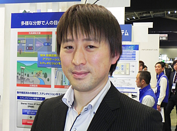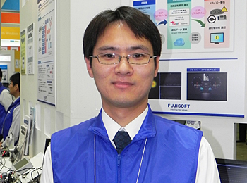 組込みソフト開発大手の富士ソフトは、目玉商材としてステレオカメラを使ったリアルタイム距離測定「Stereo Vision IP Suite」を出展。2台の小型カメラを使って動いている人やモノとの距離をリアルタイムで測定するもので、「自動車の安全運転支援、ショッピングモールや倉庫での人やモノの流れを測定するマーケティング・作業の効率化につながる商材」(富士ソフト事業企画部企画グループの成瀬龍一課長)と位置づける。