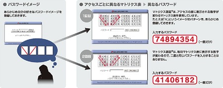 「SECUREMATRIX」は、「マトリクス認証」を採用したワンタイムパスワードシステム。マトリクス表に並べた64個の数字を選ぶ際の位置と順番がパスワードとなる。マトリクス表の数字は、アクセスごとにランダムで表示する。中国でサイバー攻撃などによる情報漏えいのリスクが高まり、ユーザーから中国での利用について要望が増えていることを受けて提供に踏み切る。