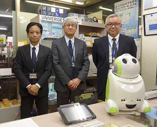さらに特設展示として、ロボット「PaPeRo」を活用し、音声合成ツールと組み合わせたコミュニケーション促進型ソリューションを披露している。古江主任は、「今後、当店をNECの神奈川データセンター(DC)とつないで、サーバーと同じような感覚で、クラウドサービスを『体感』できるようにしたい」と語る。なるほど、「クラサバ=クラウド・サバイバル」の時代は、そう遠くないのかもしれない。(ゼンフ ミシャ)