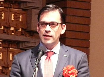最初に日本ヒューレット・パッカード(日本HP)の那須一則・プリンティング・パーソナルシステムズ事業統括パートナー営業統括本部執行役員西日本営業本部長が登壇。日本人社長として吉田仁志氏が就任したことや、PC・プリンタを中心としたHPとサーバーやクラウドサービスを提供するHewlett-Packard Enterpriseの二つの会社に分離することを説明。「各分野にフォーカスして、スピードのあるビジネスと、業界で勝ち抜く事業モデルを構築する」とアピールした。