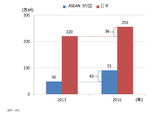 ASEAN地域のDC市場は、シンガポールを筆頭に、タイ、マレーシア、インドネシア、ベトナム、ミャンマーで急激に成長し、2013年~16年までの3年間で、日本市場の増分と同規模の約40万㎡の建設需要が期待できると予測。日本企業は、空調方式や耐熱設計など、熱帯地域のDCの独自ニーズを意識して、現地パートナーの開拓や、工業団地・IT集積プロジェクトへの参画を進める必要があるとNRIは指摘している。