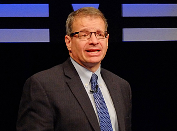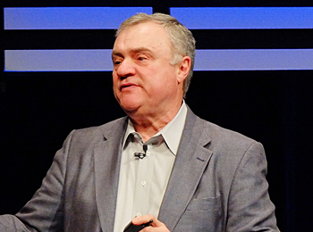 冒頭、マーク・デュパキエ・グローバル・ビジネス・パートナー担当GM(ゼネラルマネージャー)が、事業分野にかかわらず包括的なパートナー支援を行う体制として「The One Channel Team」を整備したことを宣言した(既報)が、続いて登壇したのは、スティーブ・ミルズ・ソフトウェア&システムズ担当シニア・バイスプレジデント(SVP)兼グループエグゼクティブだ。変化し続けるビジネス環境に適応してユーザーが「儲ける」ためのITとは何かについて、持論を展開した。