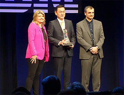 ゼネラルセッション中には、ビジネスパートナー向けの「IBM Beacon Awards 2015」の表彰も行われた。この日は、日本のビジネスパートナーからAITがOutstanding enterprise Cloud solution部門に選出され、大熊克美社長にトロフィーが授与された。(本多和幸)