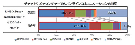 「オンラインコミュニケーション利用実態調査」は、同研究会第6期の研究テーマである「オンラインコミュニケーション能力のモデル化」の取り組みの一環として、オンラインコミュニケーションの利用実態などを調べたもの。今回の調査は、オンラインでコミュニケーションをとっている保護者と青少年(行動を客観的に振り返ることができる年齢層として高校生・大学生)、計1106人を対象に、ウェブアンケート方式で行った。