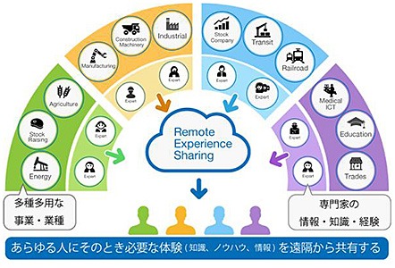 Remote Experience Sharingは、“あらゆる人にそのとき必要な体験(知識、ノウハウ、情報)を遠隔から共有する”環境を全産業向けに提供することで、ユーザーは本来のやりたいことだけに集中でき、その手段に関する専門知識を必要とせず、技術進化による恩恵を最大限享受できる世界を目指すもの。同社では、Remote Experience Sharingの実現に向けて、新たに4つのサービスを展開する。