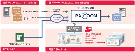 最新版では、自動マッピング機能の強化や、サポートするDBやフォーマットを増やしたほか、クラウド環境(Amazon EC2、Microsoft Azure)での稼働確認を行った。また、企業システムのクラウド環境への移行が活発化していることなどを背景に、昨年3月の「RACCOON」発売以来、データ移行のニーズが非常に高いことから、データ移行期間だけ利用するなど、期間を限定してソフトウェアが利用可能なタームライセンスを新たに導入した。