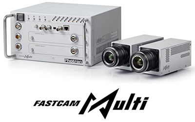 FASTCAM Multiは、1台のメインユニットに2台のカメラヘッドを接続するだけで、複雑な配線や設定なしで簡単に2台同期撮影を行うこともできるため、DIC(デジタル画像相関)システムはもとより、その他の3次元動画解析、多アングル撮影などにも最適なシステムとなっている。