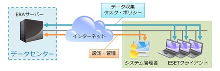 今回のバージョンアップでは、ウイルス駆除などの基本性能が強化されるほか、クライアント管理プログラム「ESET Remote Administrator(イーセット・リモート・アドミニストレータ/以下、ERA)」が刷新される。現行版では、オンプレミスの環境に管理サーバーを設置する必要があったが、今回の刷新でクラウド環境への完全対応が実現される格好だ。