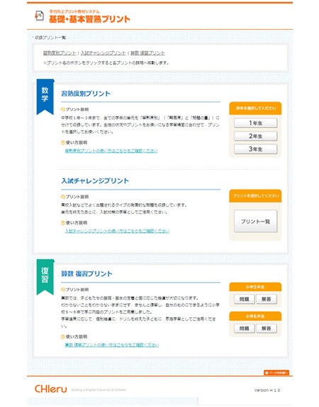 中学校数学 基礎・基本習熟プリントパックは、東北大学大学院情報科学研究科・堀田龍也教授の監修を受け、教材企画・開発会社である教育同人社が制作したプリント教材に、チエルのプリントコントロールシステム「Priduce(プリデュース)」を組み合わせた製品。中学校1年から3年まで、すべての学年の単元を習熟度別に取り組めるプリントのほか、小学校5年から6年の復習プリントと高校入試対策用プリントを合わせて、約1900枚収録している。
