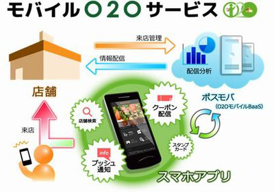 NSWが提供するモバイルO2Oサービスのスマホアプリケーションと「feelingメディアサービス」を融合することで、来店した顧客に対し、メディア端末「feeling」の利用時に動画広告などのコンテンツ配信サービスに加えて、各種情報やクーポンなどを配信(プッシュ通知)することが可能となり、効果的な来店促進に結びつけることができる。