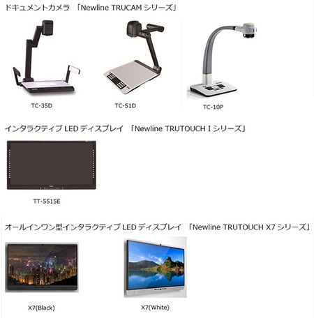 Newlineが開発・製造・販売を行う主なICT教育関連製品は、(1)ドキュメントや立体物などを捉えて大型モニタなどに投影を行うための「書画カメラ」、(2)プロジェクターで映したパソコンの画面を指やペンで操作できる電子黒板(インタラクティブホワイトボード)、(3)次世代の電子黒板として海外で普及が広まっているLED液晶パネル式電子黒板(インタラクティブLEDディスプレイ)の3本柱となっている。さらに、高画質カメラユニットと高音質マイクを搭載し、ユニファイドコミュニケーションに対応したオールインワン・インタラクティブLEDディスプレイなど、ICT教育を快適に行うためのユニークな製品を多数ラインアップしている。フォースメディアでは、これらNewlineブランドのICT教育関連製品の日本市場への投入を予定している。