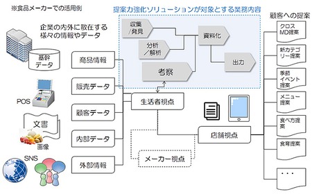 コニカミノルタビジネスソリューションズと日本ユニシスでは、この提案力強化ソリューションを11月から販売開始し、以後の3年間で食品業界などを中心に約150社への導入を見込んでいる。
