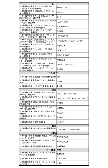 フロスト&サリバン、ICTの市場リーダーを表彰する2015年アワード受賞企業を発表