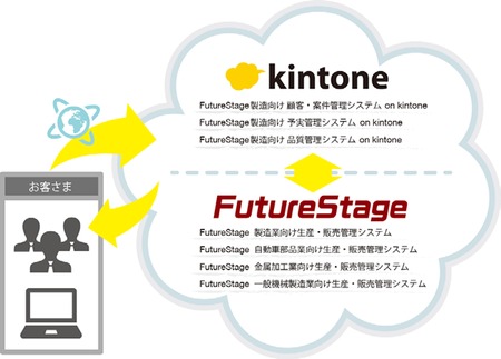 また、kintoneを活用したクラウドサービスであるため、類似の一般的なシステムと比べて、より短期間・低コストで導入することができる。さらに、FutureStageのクラウド型ソリューションと併せて利用することで、包括的な事業計画や営業戦略の立案、生産プロセスの課題抽出や最適化が可能となるほか、関連するシステムをすべてクラウドサービスに集約することにより、さらなるコスト低減や業務負荷軽減、業務の効率化を図ることができる。