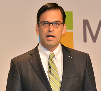 7月1日にスタートした2016年度の経営方針として、ワークスタイル変革のリーディングカンパニーを目指す「プロダクティビティとビジネスプロセス」、コネクテッドワールドのデファクトプラットフォームを実現する「インテリジェントクラウド」、革新的なパーソナルコンピューティング体験による「Windows 10+デバイス」と三つの重点分野を掲げた。