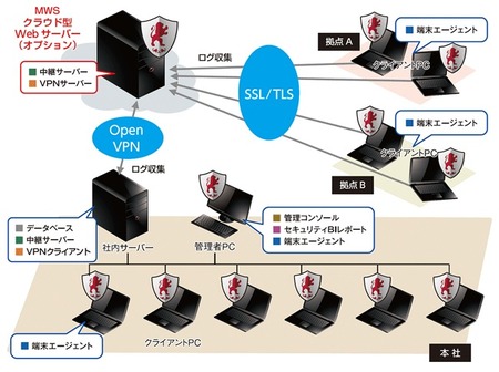 なお、SSL/TLSで端末ログの収集を行うためには、SSL/TLS通信に必要な設定を施したWebサーバーを用意する必要がある。同製品は、専用のWebサーバーを用意することなく手軽にSSL/TLSによる端末ログ収集を始められるよう、クラウド型の専用サーバー「MWS(MaLion Web Service)」をオプション(年額制)で使用することができる。