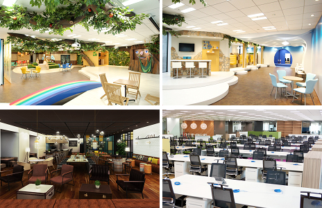 サイボウズが実践する「新しい働き方」のショールームとして、顧客やパートナーが活用できるスペースを広く設置した。また、「cybozu.com 導入相談Cafe」のスペースを増設(鳥カフェ・森カフェ・空カフェ)。高度なセキュリティと非常時での高い安全性を確保した。