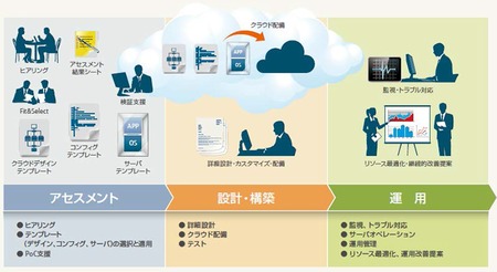 マルチクラウドインテグレーションサービスは、クラウド導入を検討する顧客に対して、最適なクラウドサービスの選定から設計・構築、運用までを一貫して支援するもの。導入前に効果分析が可能な「アセスメント基本サービス」や、トライアル用のクラウド環境での動作検証を支援する「PoC支援サービス」により、顧客要件に最適なクラウドサービスを選択することが可能となる。
