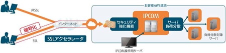 IPCOM for マルチクラウドは、ソフトウェア版ネットワークサーバーIPCOM EXをAWS上に導入することで、オンプレミス環境で利用しているIPCOM EXのファイアウォール、サーバー負荷分散、SSLアクセラレータなどの機能を利用することができるサービス。