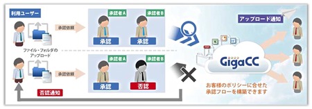 今回のアップデートでは、ファイルの誤送信・誤登録防止機能として、企業で必要性が高まっている「上長承認機能」を拡張し、承認ワークフローの設定が可能となった。同機能によって、企業ごとに異なる運用方針に合わせた柔軟な承認フローを実現し、重要データの流出を防止するフローをより多くの企業が採用できるようになる。