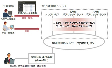 こうした背景のもと、広島大学は「電子計算機システム」のクラウドへの移行を検討するなかで、多種多様なニーズに応じたメニューを提供する日立のクラウドを採用し、複数のクラウドの利用と統合的な管理・監視が可能なフェデレーテッドクラウドを実現した。