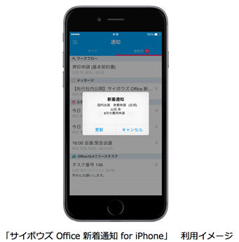 今後も、顧客のワークスタイルの変革を支援できるツールとして、スマートフォン中心の機能強化を予定している。今秋には、クラウド版を契約中の顧客を対象に、新着通知を受け取れるiPhone専用の無料アプリケーション「サイボウズ Office 新着通知 for iPhone」の提供を開始する。