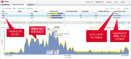 すでにTintri VMstoreを利用中の顧客は、ストレージきょう体内で未使用の領域をOpenStack向けに利用することができる。VMware、Microsoft Hyper-V、Red Hat Enterprise Virtualizationに加えて、OpenStack Cinderの複雑な混在環境であっても、わかりやすいユーザーインターフェースにより、VM単位での稼働状況をリアルタイムで解析することができる。