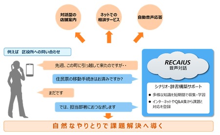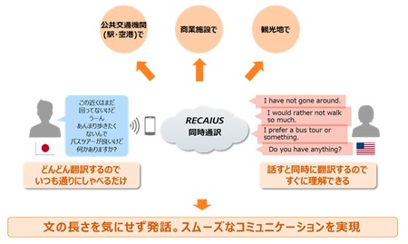 RECAIUSは、音声や映像から意図や状況を理解し、人にわかりやすく伝え、さまざまな活動を支援する音声・映像・知識処理の統合型クラウドサービス。以前商品化した「音声ビューア」「音訳エディタ DaisyRings」「音声書き起こしエディタ」の各サービスに加え、今回、「音声クリエータ」「同時通訳」「音声対話」のサービスを新たに提供する。