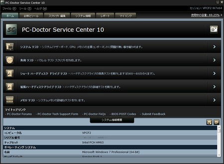 PC-Doctor Service Center 10 日本語版 インターフェース
