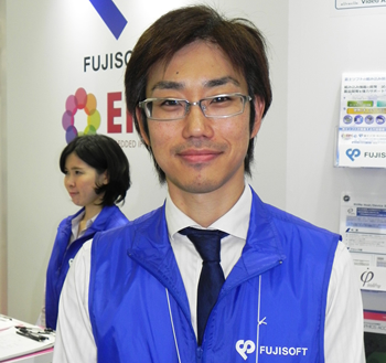 参加企業の1社である富士ソフトでは、ステレオカメラシステムの「Stereo Vision IP Suite(ステレオビジョンIPスイート)」を前面に押し出した展示を行っている。今年から本格的なビジネス化に取り組んでおり、「自動車の先進運転支援システム(自動運転)や、産業用ロボットの制御などでの引き合いが増えている」(富士ソフトの姫野呂裕・IPビジネスグループ課長)と話す。