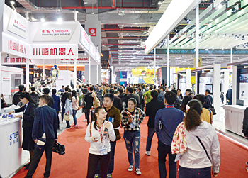 中国工業界最大のイベントに国内外から関係者が集まった イベントのテーマは「スマート技術が開く“中国製造2025”」。中国では、2015年5月に「中国製造2025(中国製造業10か年計画)」行動計画が国務院によって発表され、米国やドイツ、日本に並ぶ“製造強国”の仲間入りを目指して、製造業の高付加価値化に向けた産業革新が進められている。同計画では、現在0.95%程度である企業の研究開発投資(対売上高比率)を、20年に1.26%、25年には1.68%程度に引き上げることを目標としており、10大重点分野の一つとして「次世代情報技術」を指定。情報化と工業化の融合(中国版Industry 4.0)やモバイルインターネット、IoT(Internet of Things)などを推進している。IT企業にとっては、工業向けビジネスの商機拡大が見込まれる。
