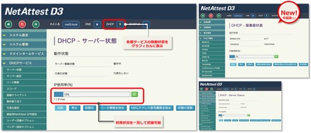 今回のバージョンアップでは、DHCP機能の大幅な処理速度の向上を行い、端末数1万台規模のネットワーク環境でも安定的にハイパフォーマンスを発揮できるようになった。中大規模向けモデルでは、従来版の約5倍となる約2800リース/秒(1秒間に払い出せるIPアドレスの数)を実現している。