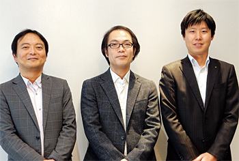 イトーキ・ICTメディア研究開発室の秋山恵室長(左)と、製品の企画・開発を担当した同開発室の川村正太郎氏(中)、ICT事業企画開発室の西川政行プランナー(右)