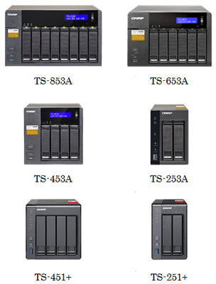 「TS-x53Aシリーズ」は、現在のデスクトップタイプのビジネス向け主力製品である「TS-x53Proシリーズ」の後継に位置づけられる製品で、8ベイ、6ベイ、4ベイ、2ベイの4機種をラインアップしている。CPUにクアッドコア Intel Celeron N3150 1.6GHz(Turbo Boost時2.08GHz)を搭載し、メモリはDDR3L RAMを標準で4GB搭載(最大8GB)、ネットワークはギガビットイーサネットを4ポート(2ベイモデルは2ポート)備えている。また、ビジネス上の高いセキュリティ要求に対応するためにAES-NIによるハードウェア暗号化機能を標準で搭載し、暗号化しても非暗号化時と同等の性能を実現する。