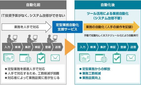 「定例業務自動化支援サービス」導入前後のイメージ