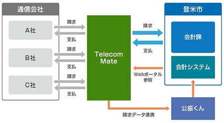 こうした背景を踏まえ、登米市は、日立システムズの通信回線統合管理サービスTelecomMateを採用した。TelecomMateは、固定電話、携帯電話、データ回線など、複数の通信会社の請求を日立システムズが取りまとめて支払いを代行し、顧客には毎月1回通信料の総額を請求するとともに、利用部門単位・回線単位の料金明細をウェブ上で提供するサービス。日立システムズが請求業務を取りまとめることで通話料(固定電話)に大口割引を適用可能となり、回線コストの低減を図ることができる。また、利用状況にもとづいて、割安な料金プランの提案なども行う。