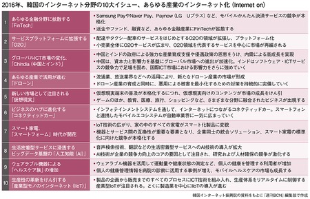 FinTechは15年に続いて10大イシューに選ばれており、アリババやテンセント、Baiduなど、中国の大手ICT企業が新しい金融サービスを続々と提供し、消費者の生活に浸透している。一方、「韓国では金融規制、行政間の壁が産業の発展に大きな妨げとなっており、規制の緩和と改善が急務だ」と専門家は語る。(つづく)(文/鄭麗花)