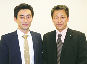 エーティーワークスの高瀬由照本部長(左)とキヤノンITSの崎山秀文部長