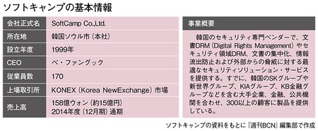 情報セキュリティは、国家安全保障の観点から中国政府がもっとも重要視する分野。中国大手IT調査会社のCCIDコンサルティングによると、14年の中国情報セキュリティ市場の規模は226億8千万元(約4318億円)で、前年同期比の18.5%増だった。イーグルセキュリティやFasooなど、韓国有数のセキュリティベンダーが中国現地企業と業務提携を結び、中国市場の開拓を精力的に行っている。