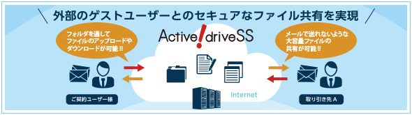 Active!drive SSは、大容量ファイル転送・オンラインストレージを一つのサービスで提供し、“情報漏えい対策”と“データの一元管理”を支援する。さらに、容量追加オプションを契約すると、ファイルの保存期間に制限のない無期限ドライブも利用することができる。
