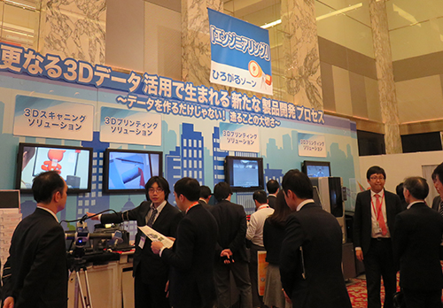 今回のテーマは、「つながると見える!ひろがるビジネス。」。すべてのシステムが「つながる」ことを前提に、顧客視点で「攻めのIT投資」を積極的に支援する内容となっている。展示会場は大きく「テーマゾーン」「つながるゾーン」「ひろがるゾーン」の三つにわかれ、各ゾーンでそれぞれ関連する製品やサービスを展開。約300種類のシステムを展示している。セミナーは3日間で、特別セミナーを12コース、CADセミナーを含めた一般セミナーを76コース用意した。