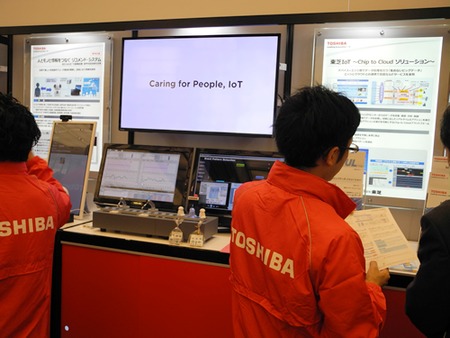 昨今注目を浴びるIoTというキーワードでは、東芝が「Chip to Cloud」を展示。各デバイスに組み込んだエージェントソフトウェアが必要な情報のみをクラウドでやりとりし、ネットワークの負荷を最小限に抑えて解析が可能になる。また、音声や映像から、人の意図と状況を解析するクラウドサービス「RECAIUS」も紹介し、東芝グループ内で培ったIoTへのノウハウをもとに、グループ外のパートナーともビジネスを進めるべく積極的なマーケティング活動を行っている。