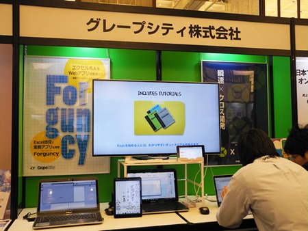 開発ツールという観点でユニークな商材を展示していたのはグレープシティ。エクセル感覚でウェブアプリをつくることができる「Forguncy」と、小規模・低コストで簡単にさまざまなプラットフォームのアプリ開発が可能な統合開発環境「Xojo」を紹介。それぞれ販売開始から約1年半、半年と日が浅い商材だが、多くの開発者から支持を受け堅調に売り上げを伸ばしているという。